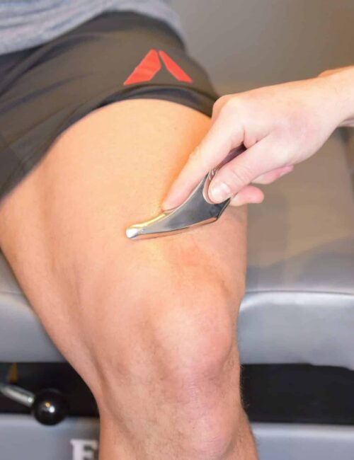 Treatment may include instrument-assisted soft tissue work (the “scraping” tool), pin-and-stretch style (functional range release) / myofascial release, and targeted trigger point work.